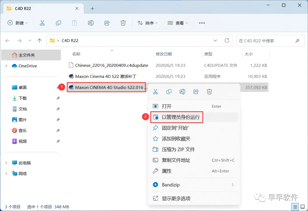10、回到C4D R22文件夹,找到【Maxon Cinema 4D S22激活补丁】程序,右键选择【以管理员身份运行】它