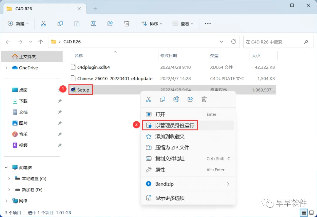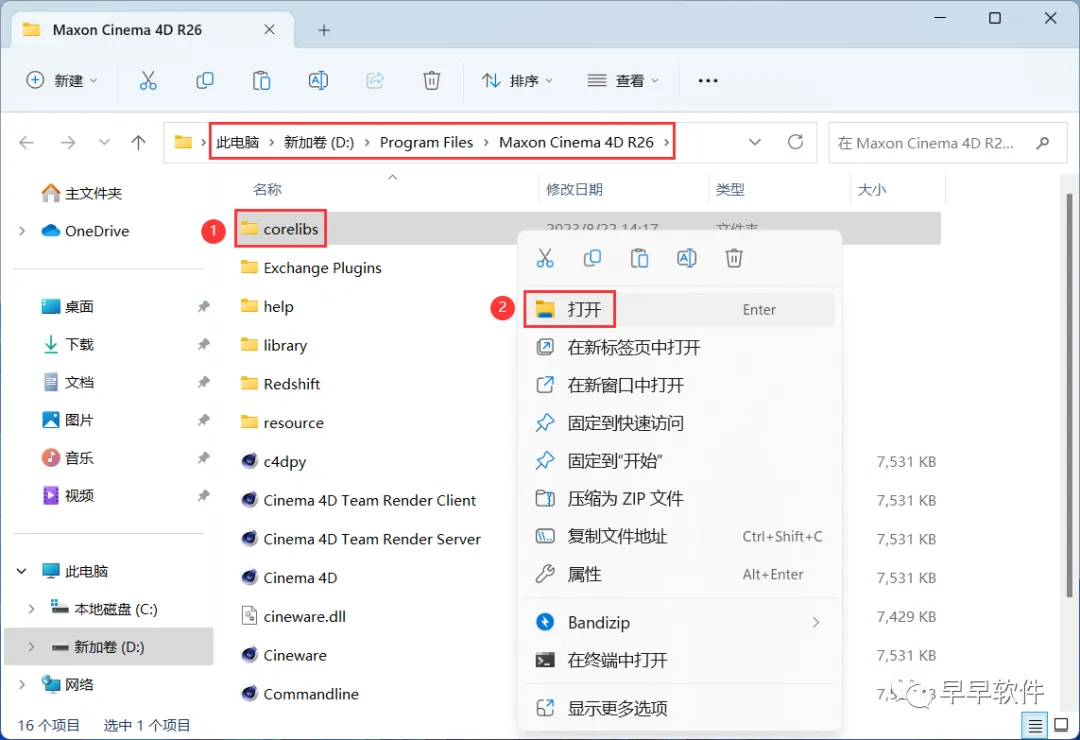 1、下载C4D R26软件安装包到电脑上,右键选择【解压到C4D R26\】