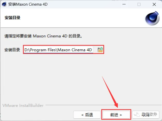 5、软件默认安装在C盘,可自定义更改软件安装位置,这里小编选择安装在D盘;点击【前进】