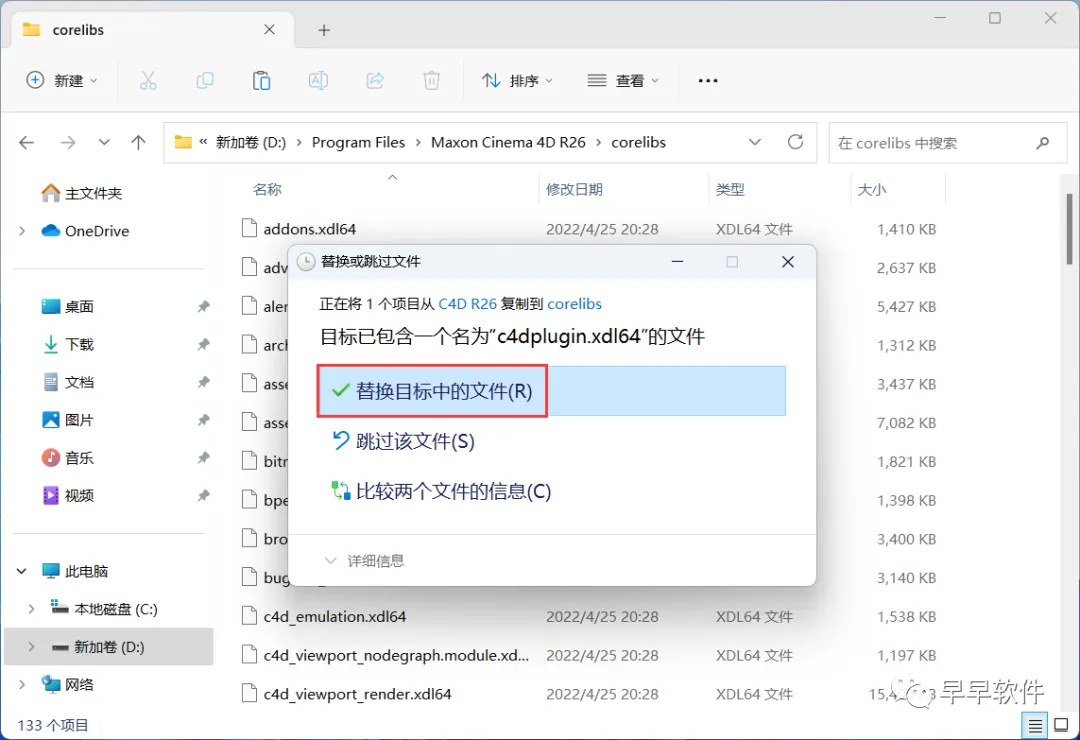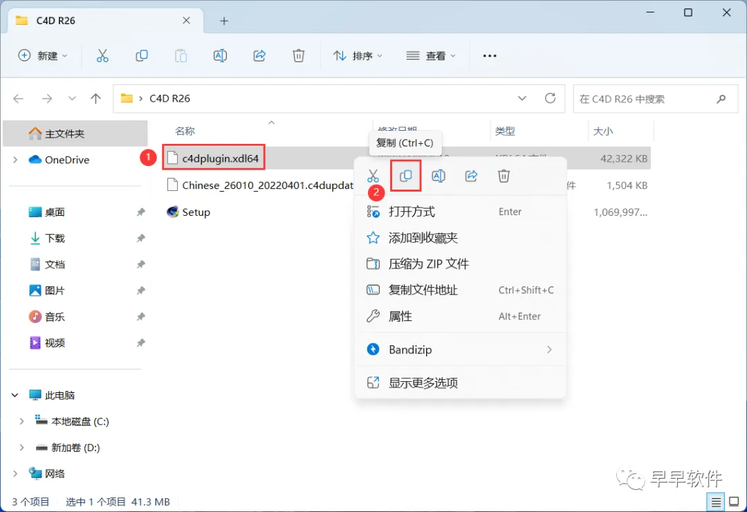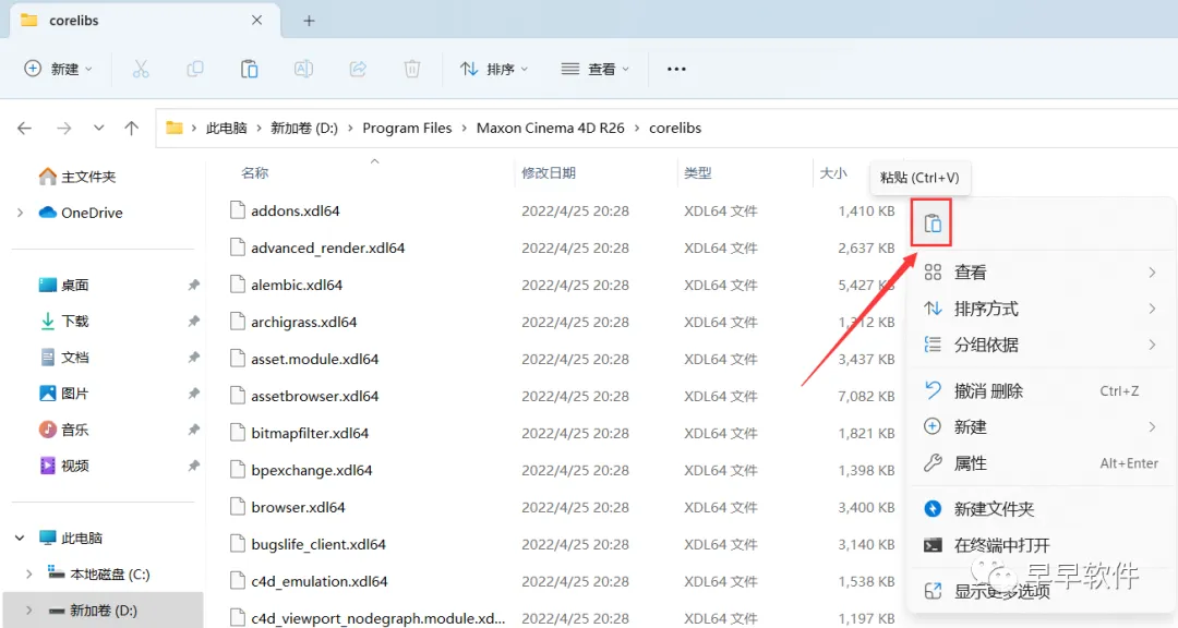 10、回到C4D R26文件夹,找到【c4dplugin.xdl64】文件,右键点击【复制按钮】