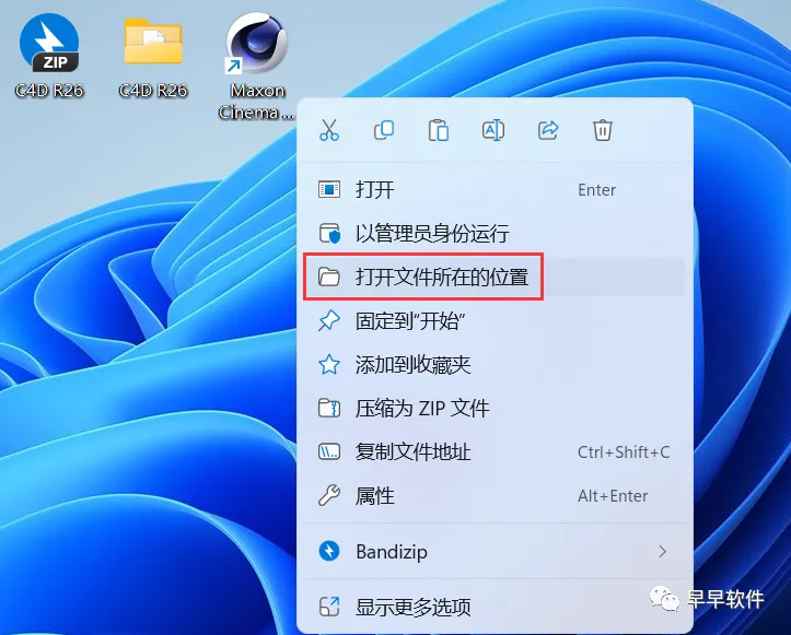 12、右键桌面上的【C4D R26软件图标】,点击【打开文件所在的位置】