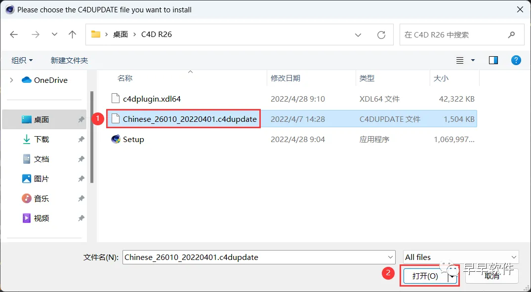 19、选中C4D R26文件夹下的【Chinese…】文件,再点击【打开】