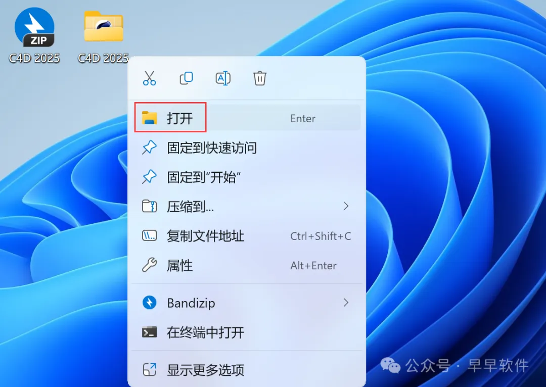 16、回到桌面,右键桌面上的【C4D 2025软件图标】,点击【打开】