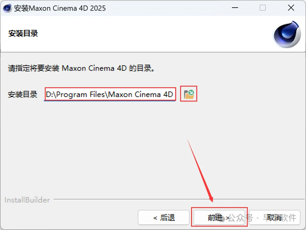 5、软件默认安装在C盘,可自定义更改软件安装位置,这里小编选择安装在D盘;点击【前进】