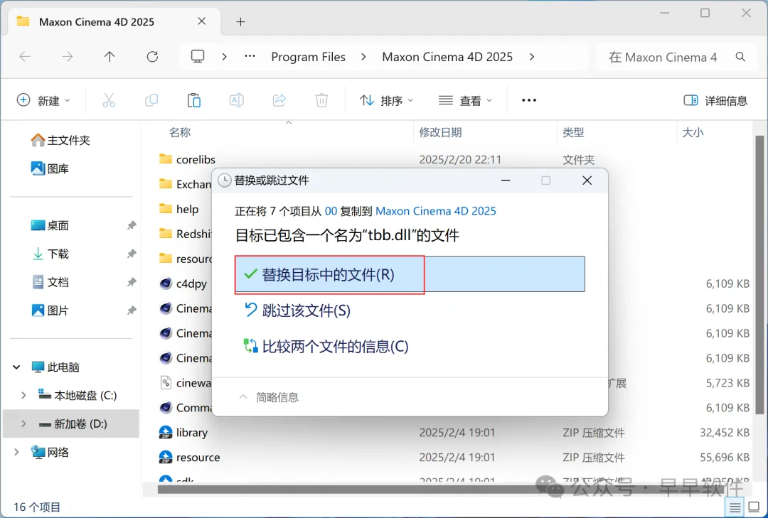 15、点击【替换目标中的文件】