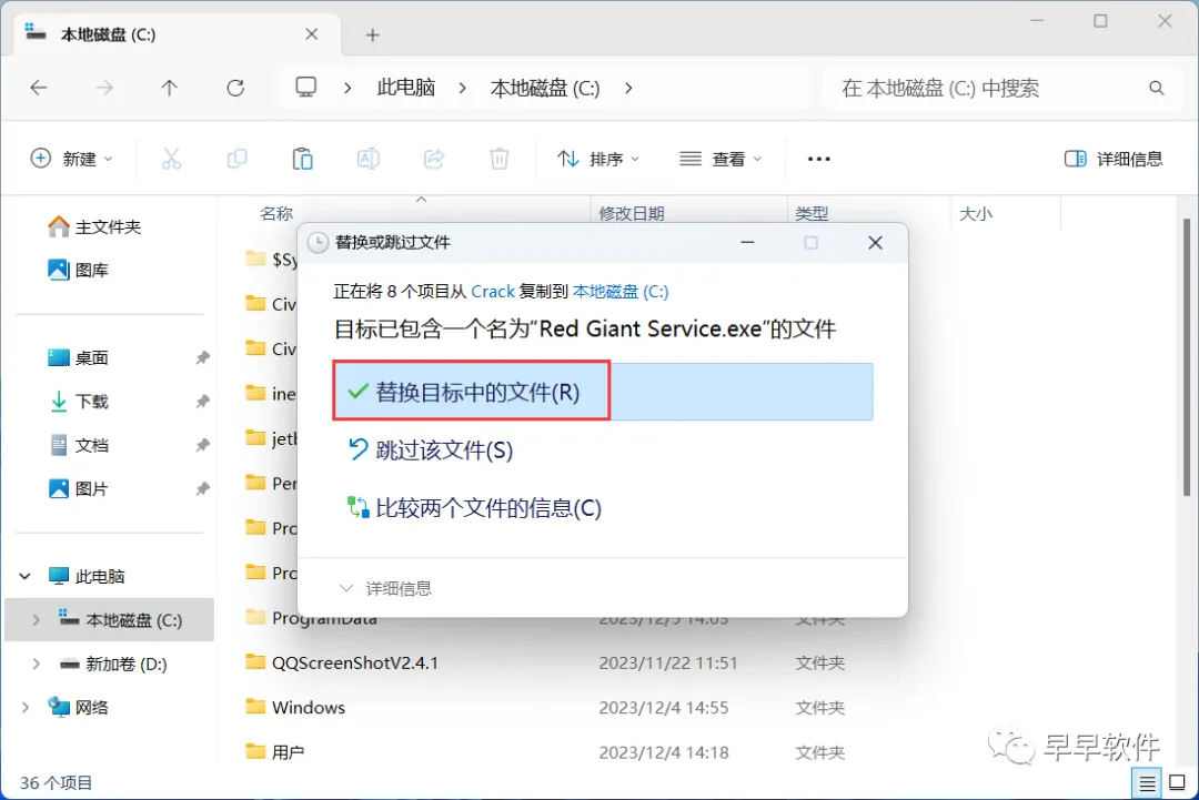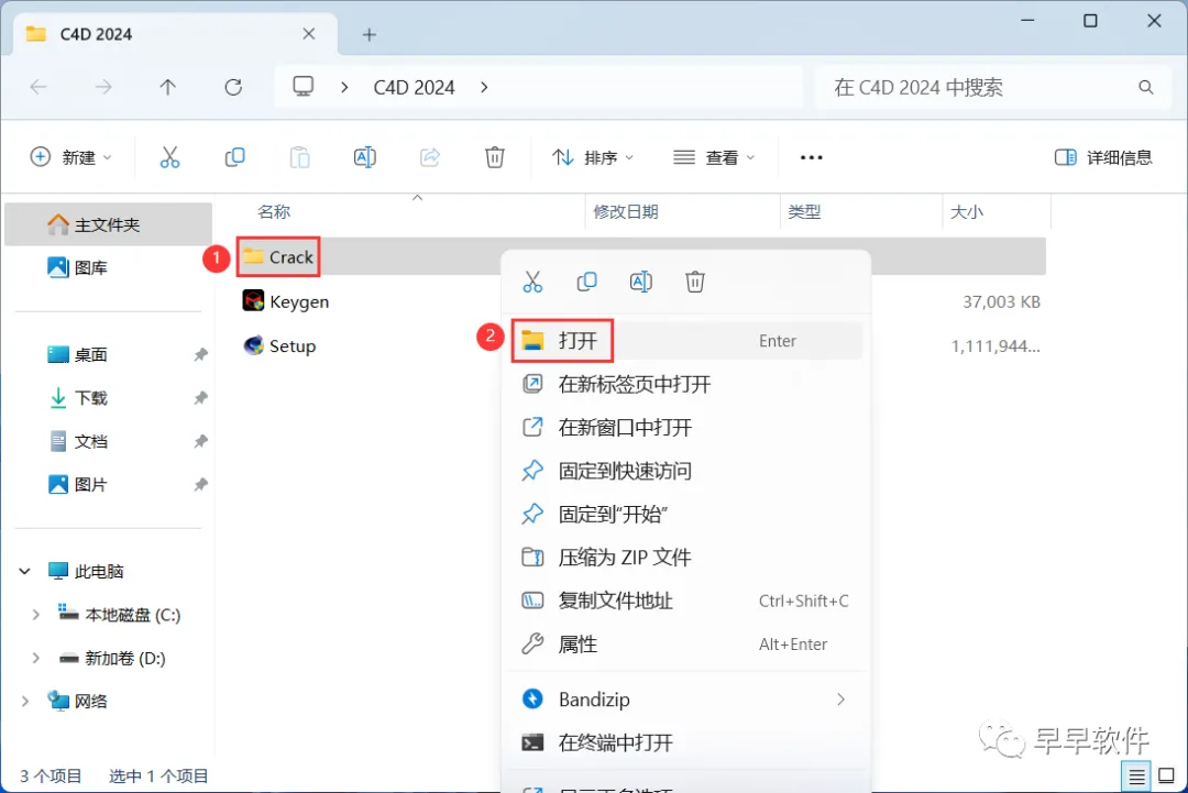 9、回到C4D 2024文件夹,找到【Crack】文件夹,右键【打开】它