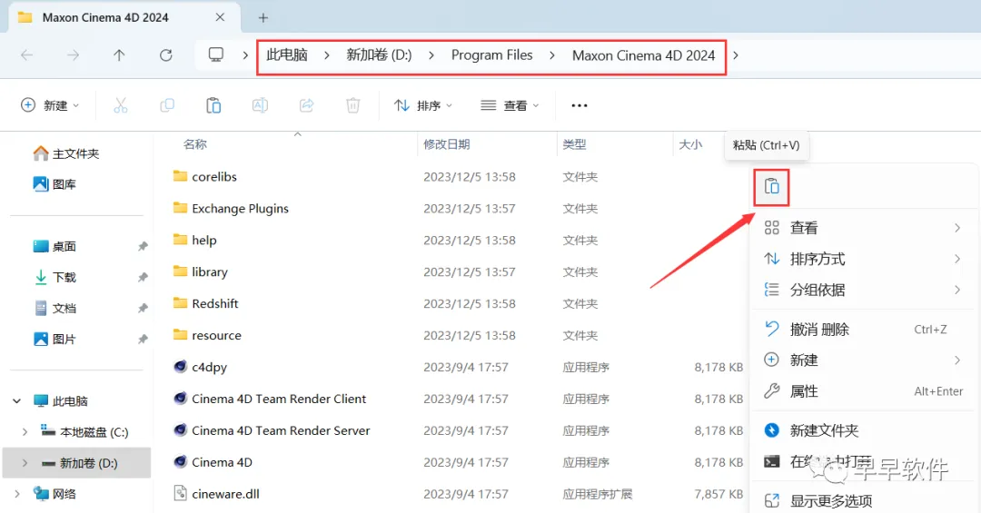 1、下载C4D 2024软件安装包到电脑上,右键选择【解压到C4D 2024\】
