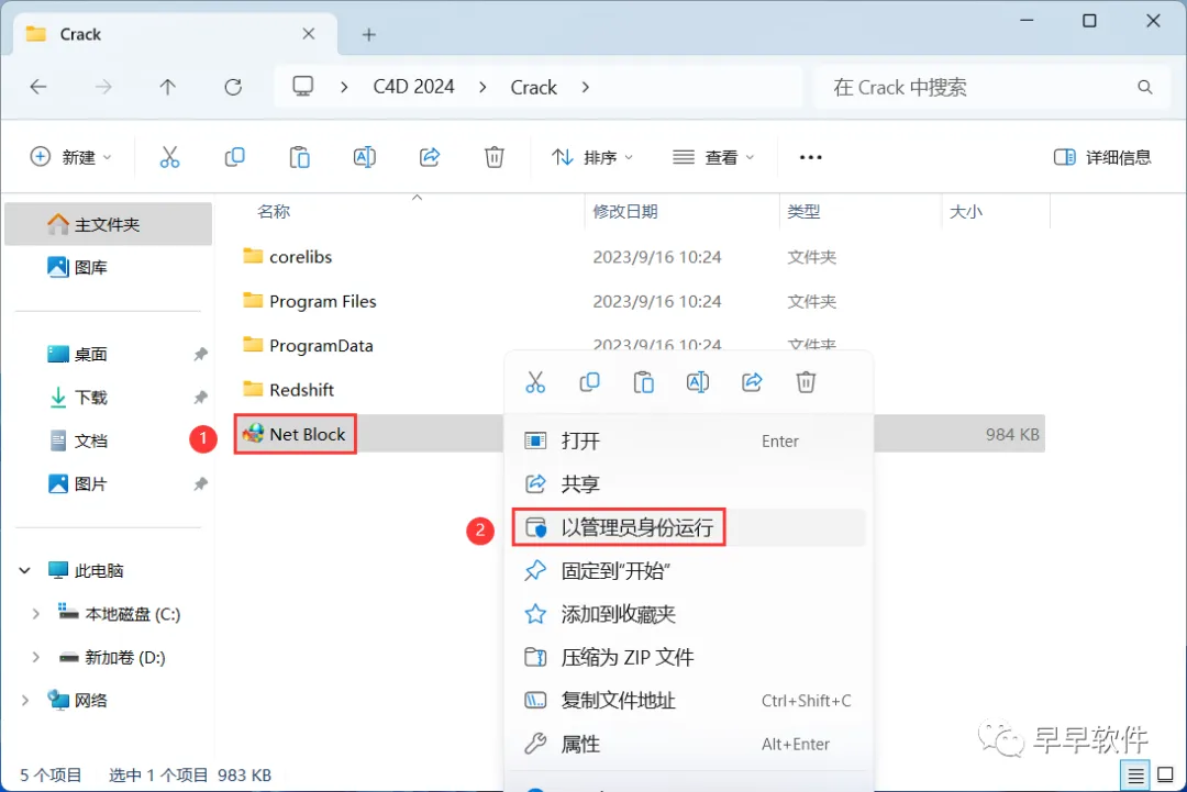 27、回到Crack文件夹,找到【Net Block】程序,右键选择【以管理员身份运行】它