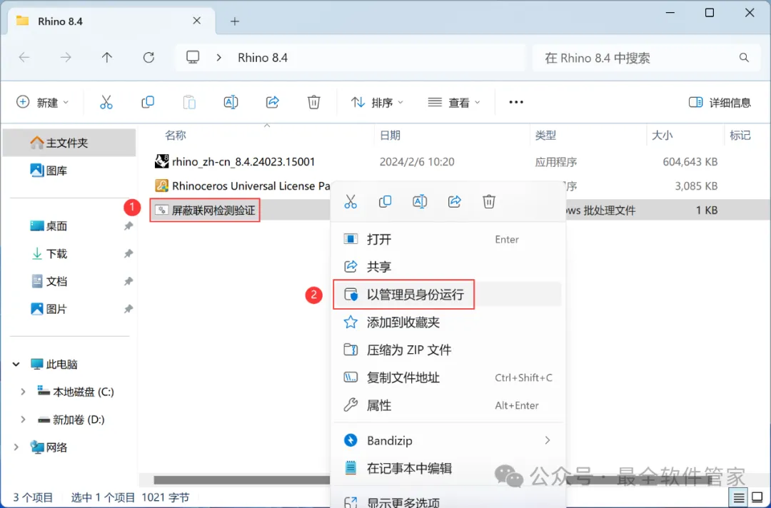 5、找到【rhino_zh-cn_8.4】应用程序,右键选择【以管理员身份运行】它
