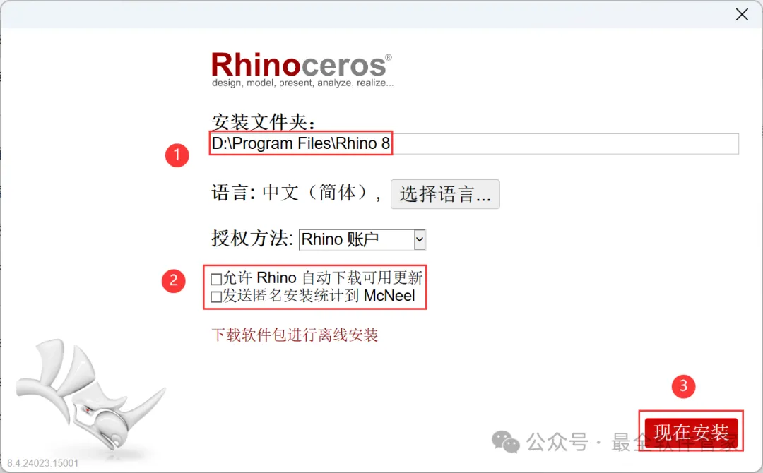 11、不勾选【Install…Rhinoceros 6】和【Install…Rhinoceros 7】,再点击【Install】