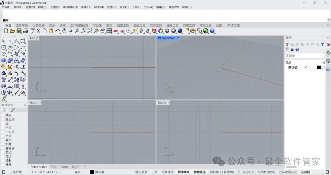 Rhino 8.4中文名为“犀牛软件”,是一款高级建模软件,拥有着强大的 3D 建模设计功能,可以为您提供创建模型、编辑、分析、渲染、动画设计与转换 NURBS线条、曲面、实体与多边形网格等等全套的模型设计。Rhinoceros 可以让您不受限制的自由设计三维模型,模拟设计出任何你能想象到的形状。