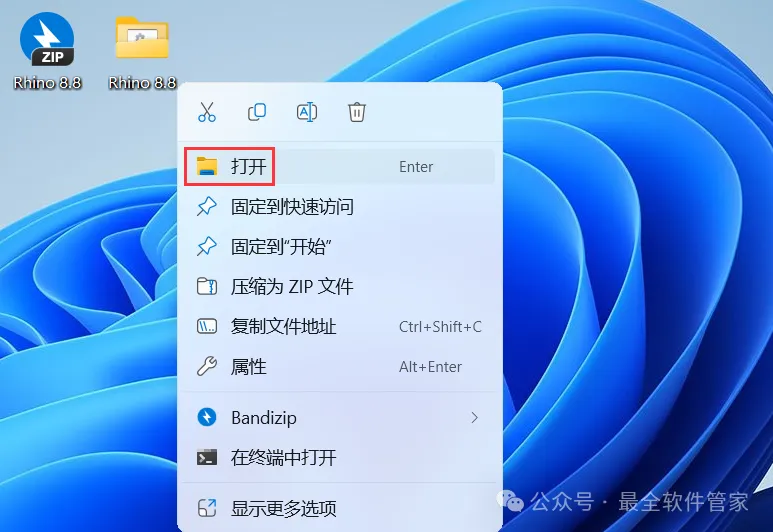 14、回到桌面,右键桌面上的【Rhino 8软件图标】,点击【打开】