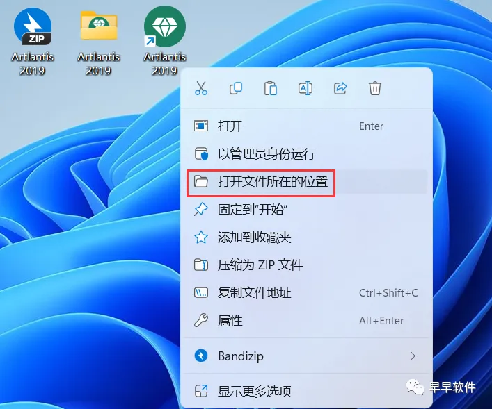 14、回到桌面,右键桌面上的【Artlantis 2019软件图标】,点击【打开文件所在的位置】