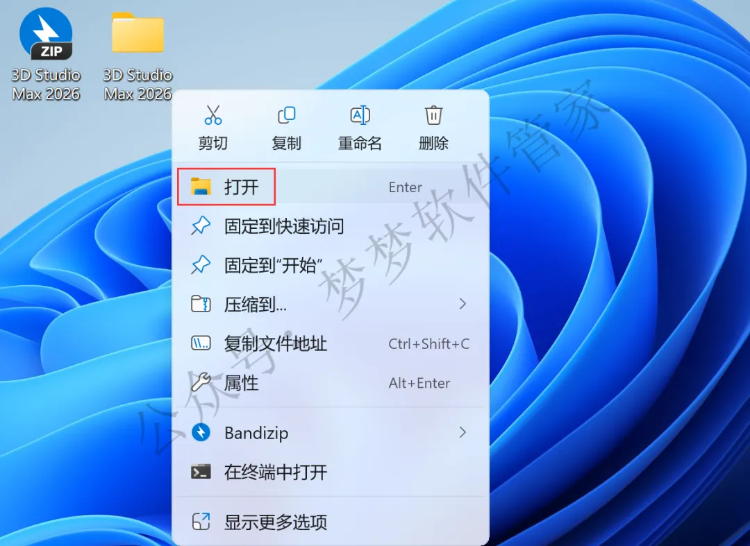 18、回到桌面,右键桌面上的【3ds Max 2026软件图标】,点击【打开】