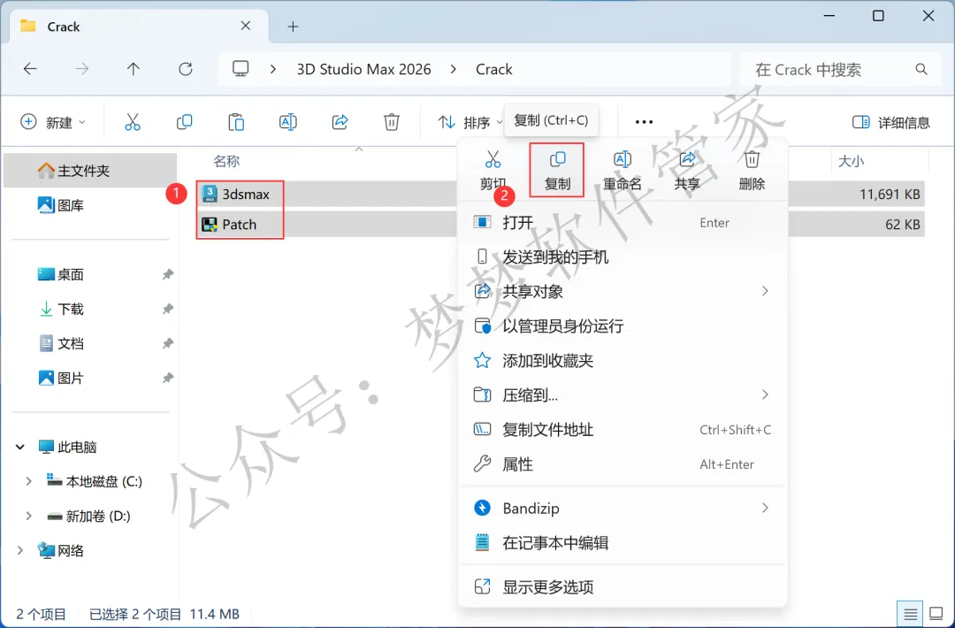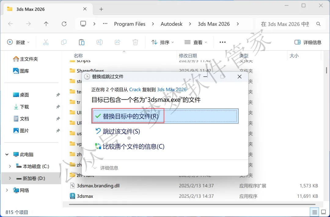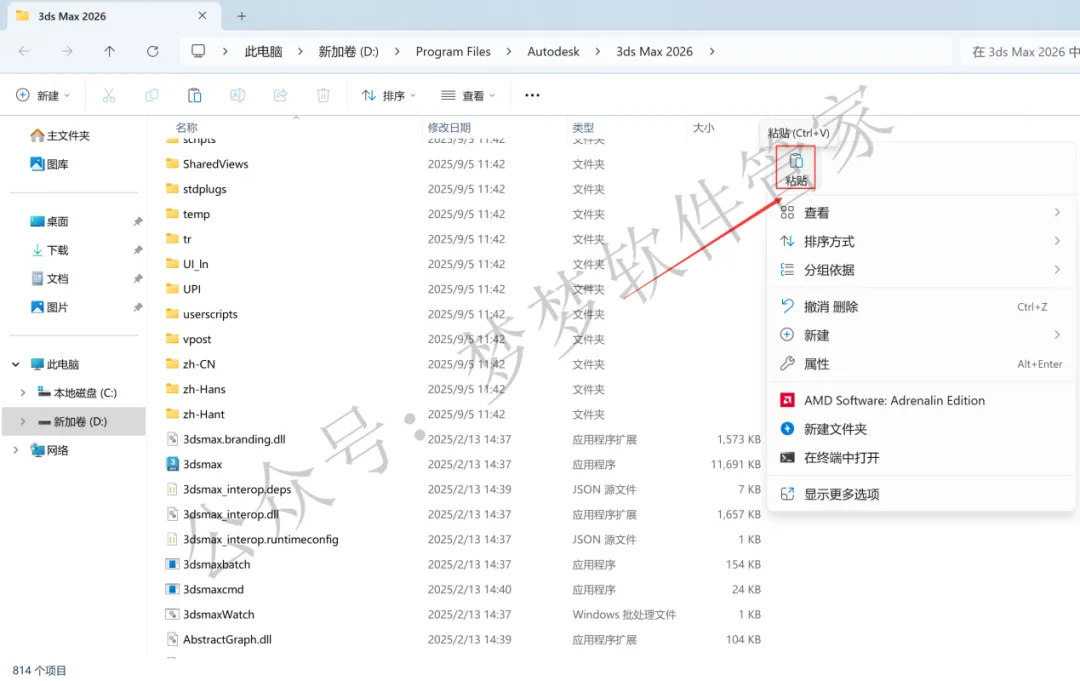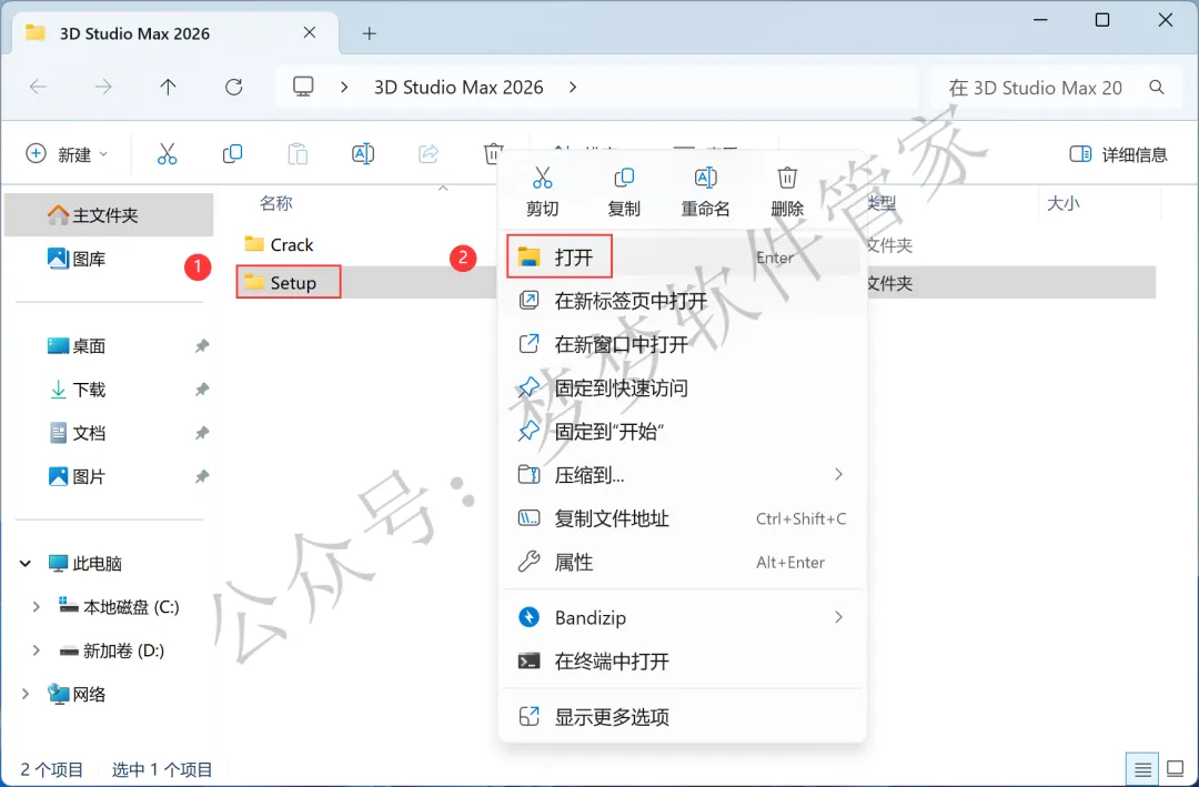 10、回到3D Studio Max 2026文件夹,找到【Crack】文件夹,右键【打开】它