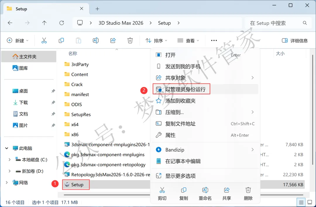 1、下载3D Studio Max 2026软件安装包到电脑上,右键选择【解压到3D Studio Max 2026\】