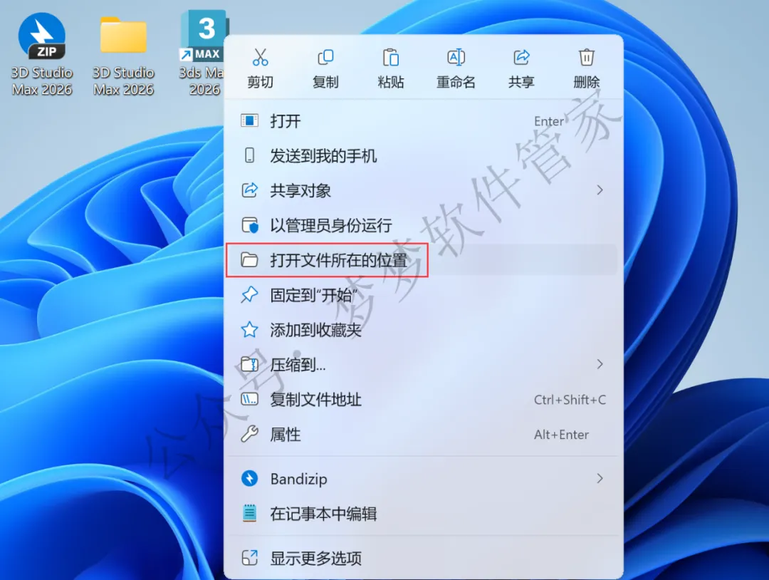 12、回到桌面,右键桌面上的【3ds Max 2026软件图标】,点击【打开文件所在的位置】