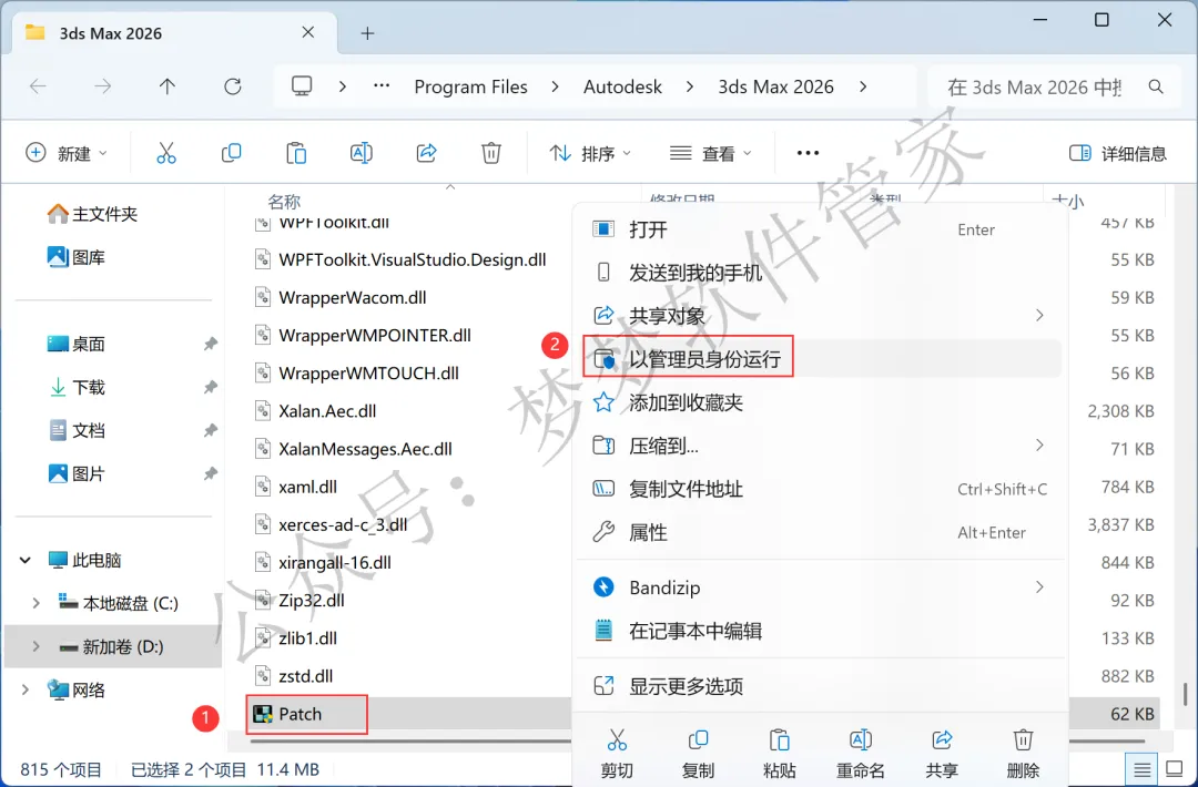 15、找到粘贴的【Patch】文件,右键选择【以管理员身份运行】它
