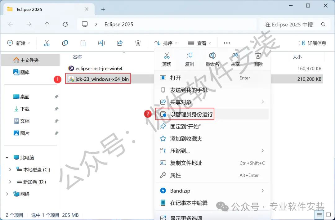 8、回到Eclipse 2025文件夹,找到【eclipse-inst-jre-win64】应用程序,右键选择【以管理员身份运行】它