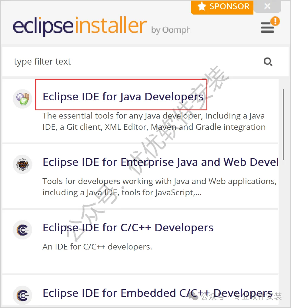 9、点击【Eclipse IDE for Java Developers】