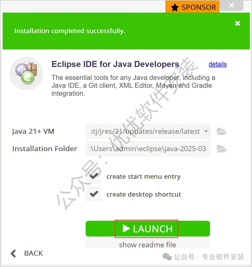 13、软件安装成功,点击【LAUNCH】