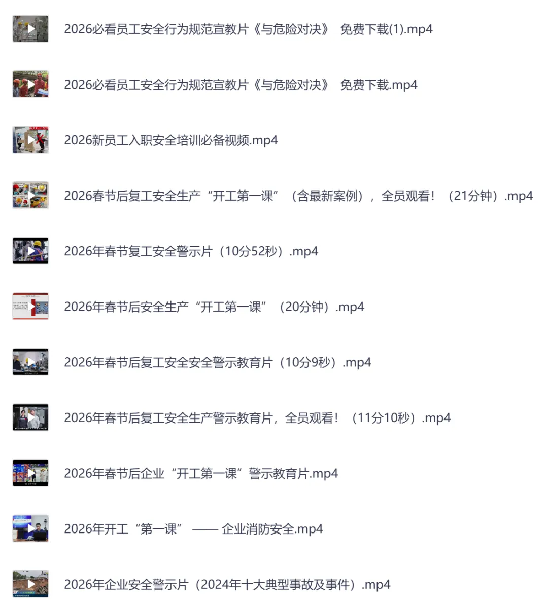 >【免费下载】2026年春节节后复工教育系列视频24个