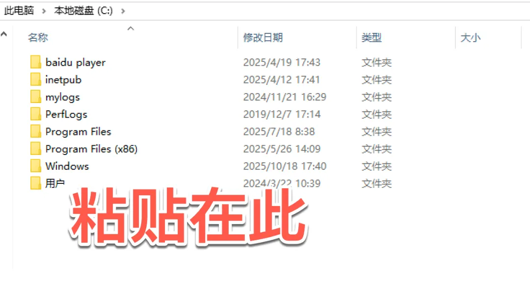 8、打开电脑 C 盘根目录,ProgramData 粘贴在此