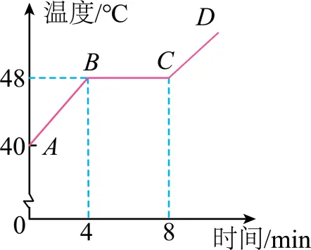 C. 物质的初温是40℃D. 加热5min时物质温度是48℃