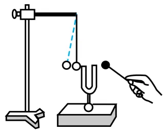 14. 2025年我国将实现航天员登月计划,在月球上漫步的航天员需借助无线电通信设备才能进行交谈,其原因是______不能传声;如图所示,将悬挂的乒乓球轻轻接触正在发声的音叉,观察到的现象是乒乓球被弹开,此现象表明声音是由物体______产生的。
