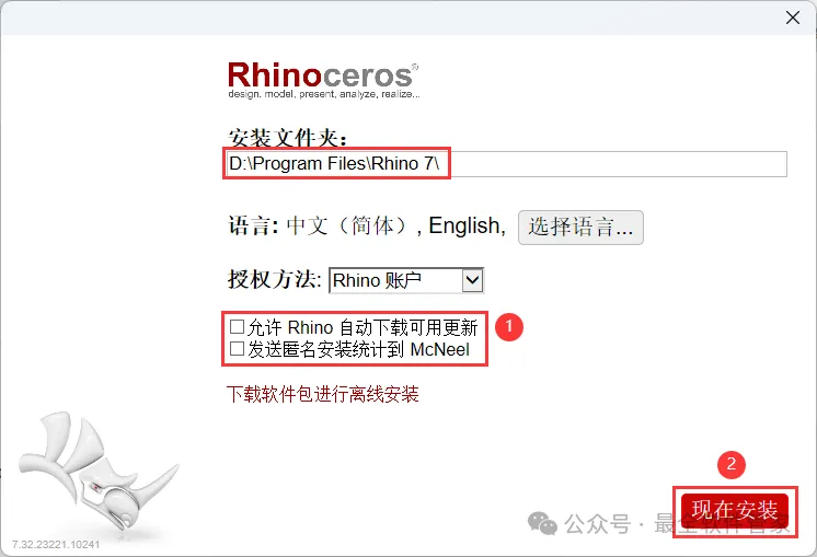 Rhino 7.32中文名为“犀牛软件”,是一款高级建模软件,拥有着强大的 3D 建模设计功能,可以为您提供创建模型、编辑、分析、渲染、动画设计与转换 NURBS线条、曲面、实体与多边形网格等等全套的模型设计。Rhinoceros 可以让您不受限制的自由设计三维模型,模拟设计出任何你能想象到的形状。