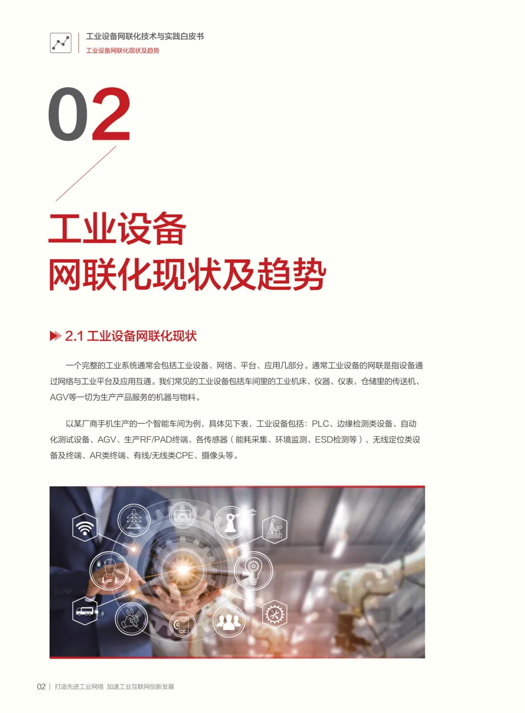 《工业设备网联化技术与实践白皮书》以“打造先进工业网络 加速工业互联网创新发展”为核心主题,聚焦工业设备网联化这一工业互联网发展的基石,系统梳理现状、剖析趋势、提出方案并分享产业实践,为工业企业数字化转型与网络体系强基提供全景指引。