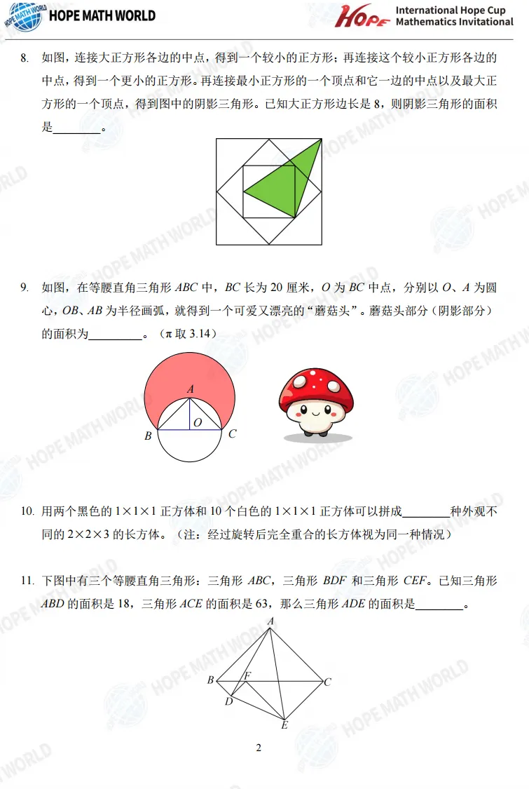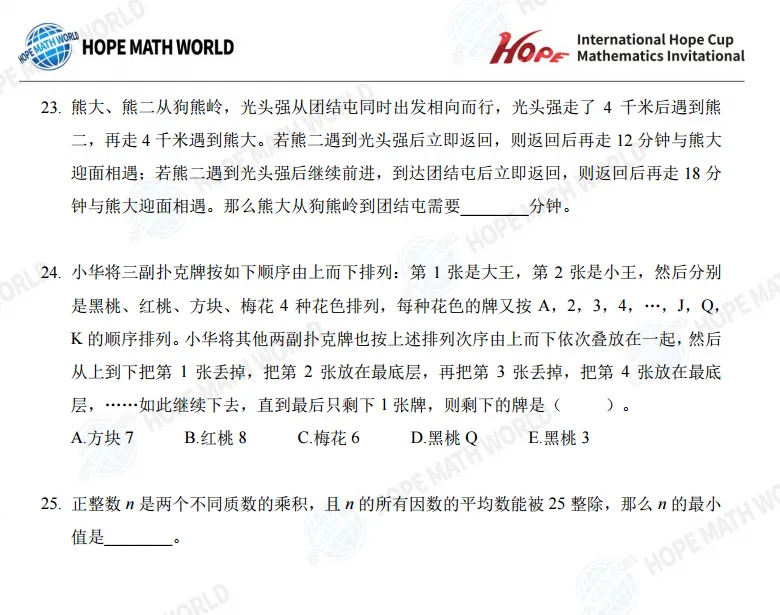 1~8年级希望杯真题可添加小轩老师免费获取: