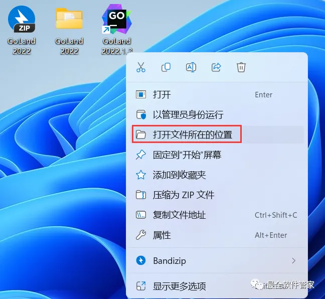 40、回到桌面,右键桌面上的【GoLand 2022.1.3软件图标】,点击【打开文件所在的位置】
