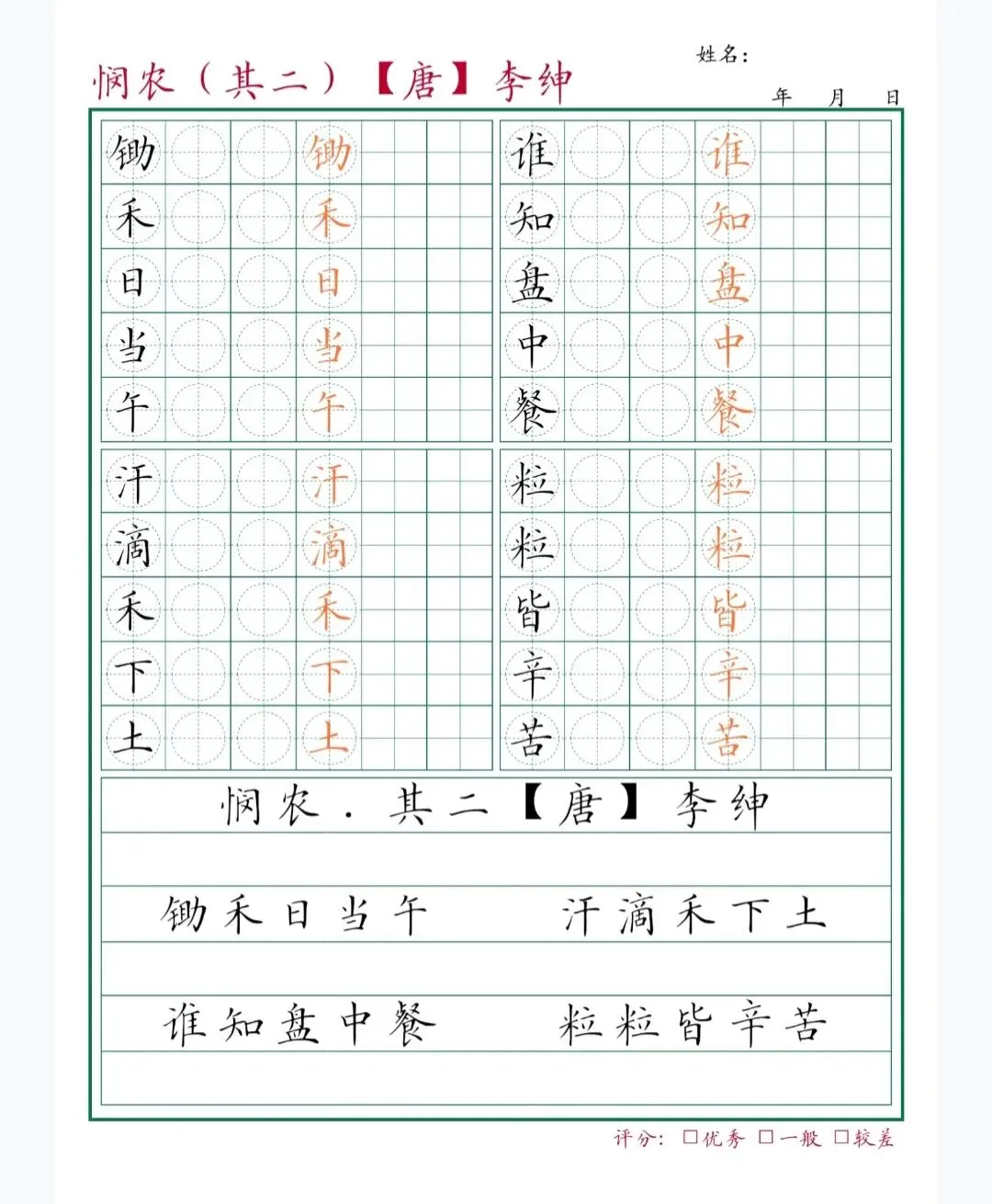 本文分享的是小学一至六年级古诗字帖