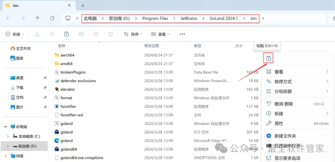 10、回到GoLand 2024文件夹,找到【Crack】文件夹,右键点击【复制按钮】