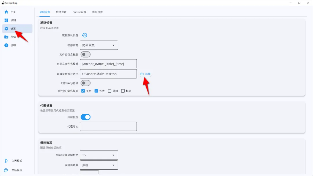 然后点击录制,点击右上角的+号,复制直播间地址并填写,名称可以留空,支持清晰度选择,最高支持原画,格式默认的TS即可,支持批量导入。