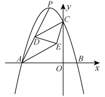 16. 如图抛物线与轴交于,与轴交于点,点为顶点,线段上有一动点,以为底边向下作等腰三角形,且,则的最小值为___________.
