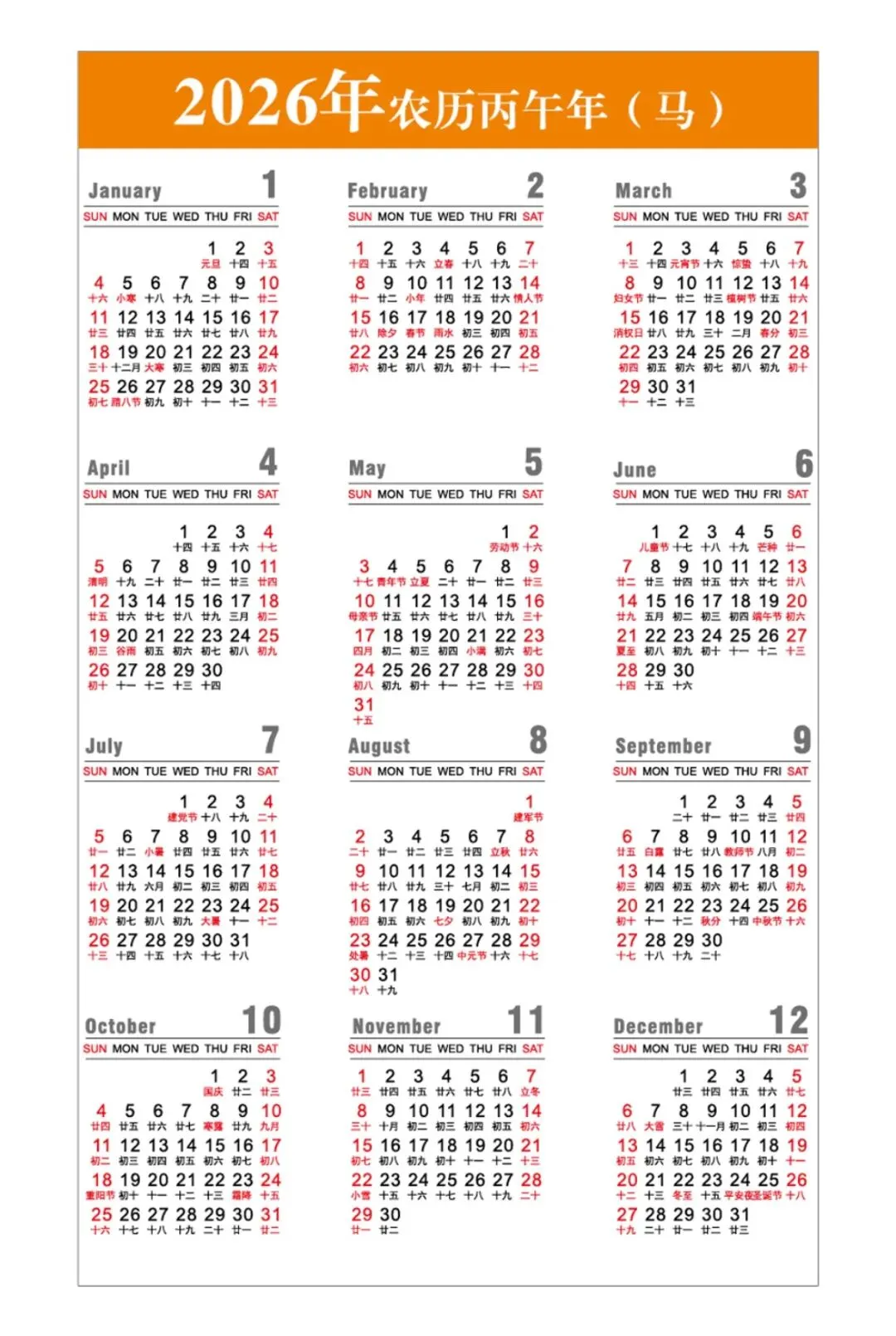 >免费下载!最新2026全年高清日历台历表电子版excel可打印