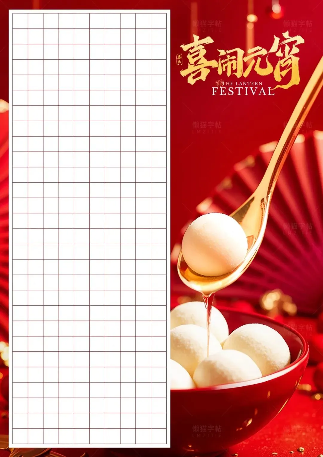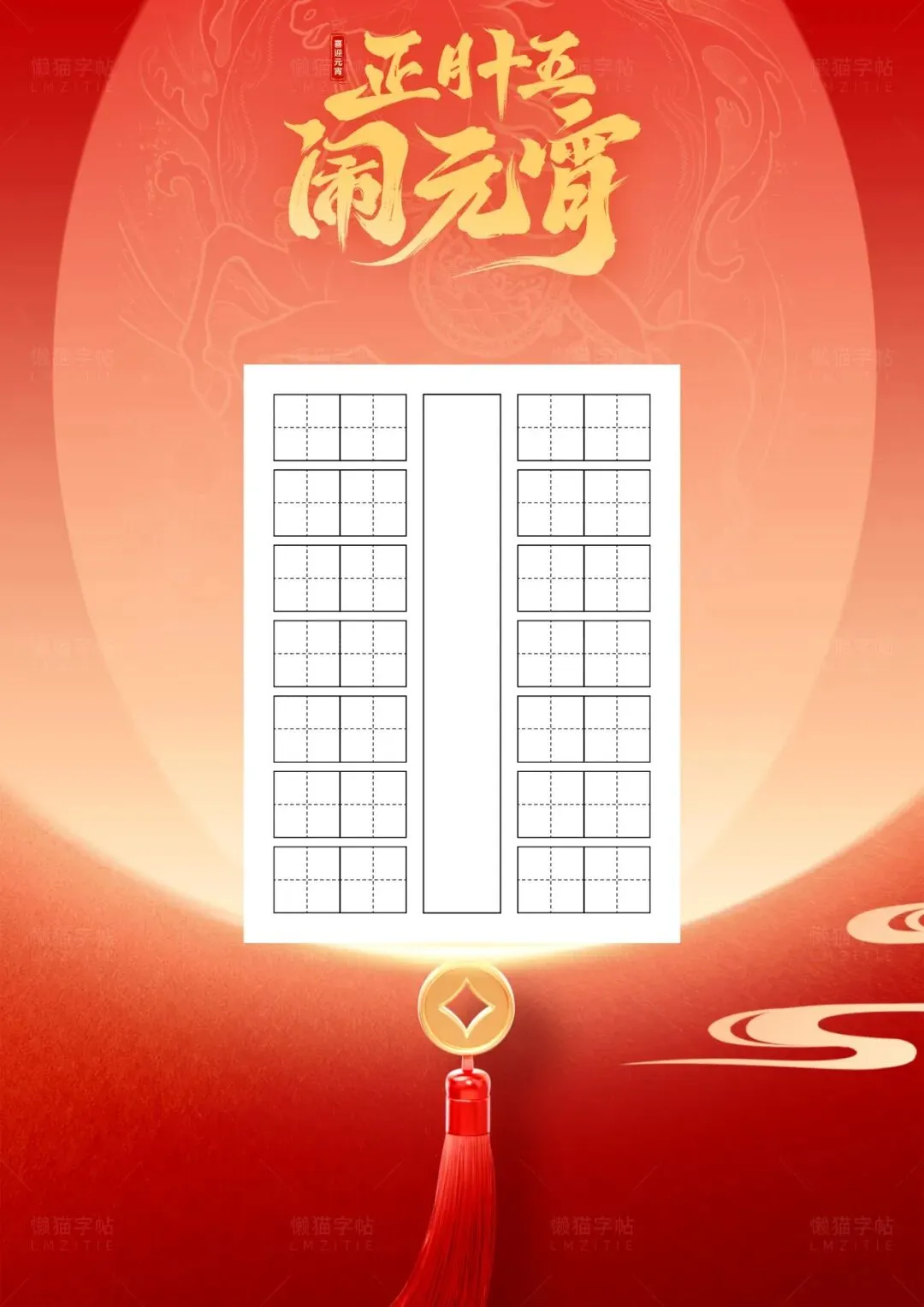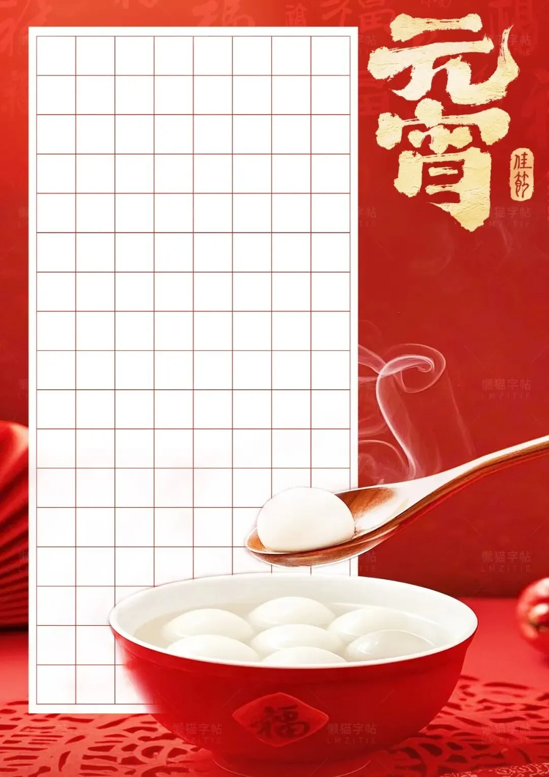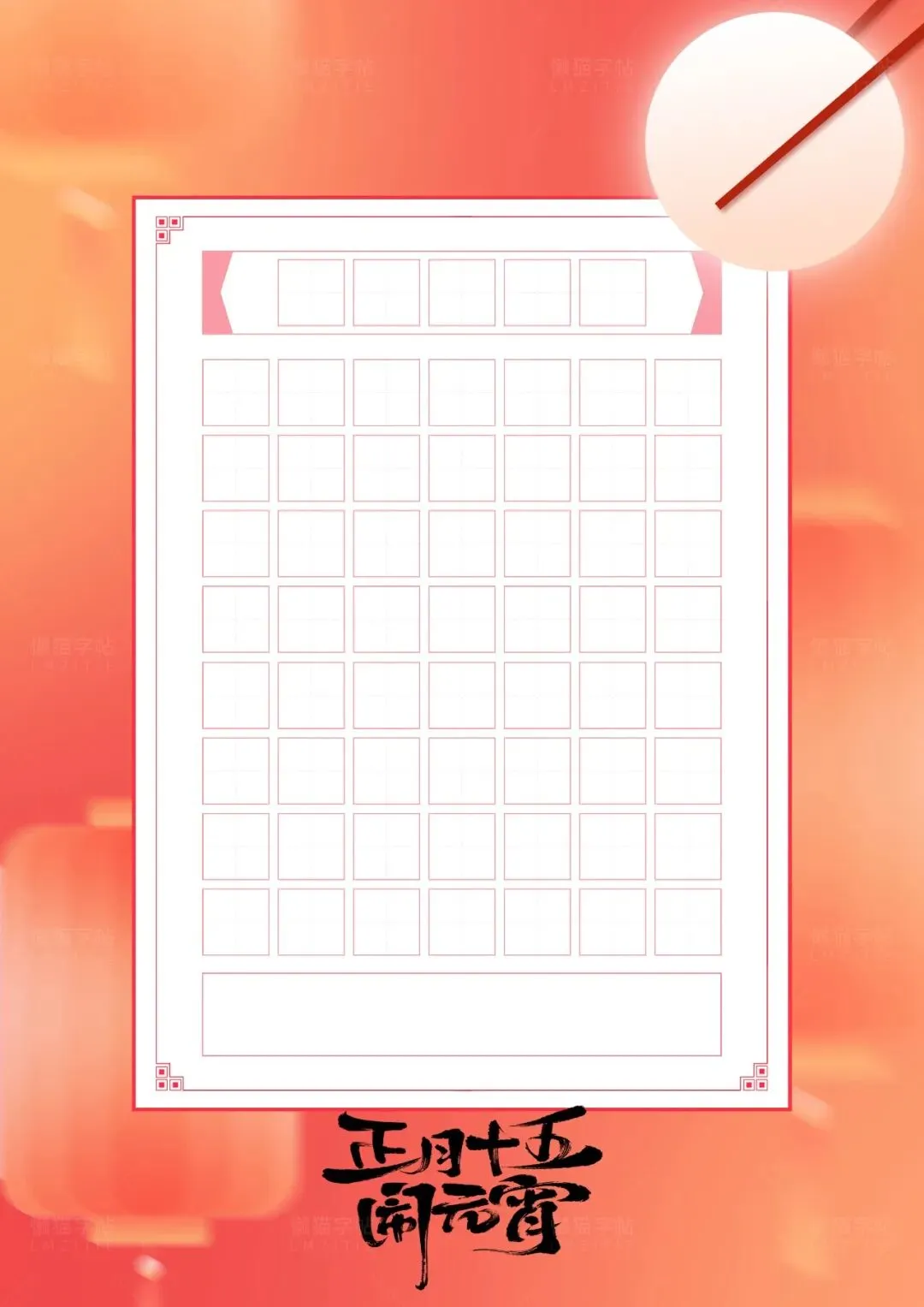 春节长假马上结束啦,假期最后一天抽空设计了一套元宵节主题的作品作品纸,一共11款,田字格/方格/1.5和1.0格子/七言古诗和短文的都有,全部可免费下载。🏮元宵节专属作品纸来啦!灯笼、汤圆、圆月、古风纹样……多款精美版式,一键保存使用。