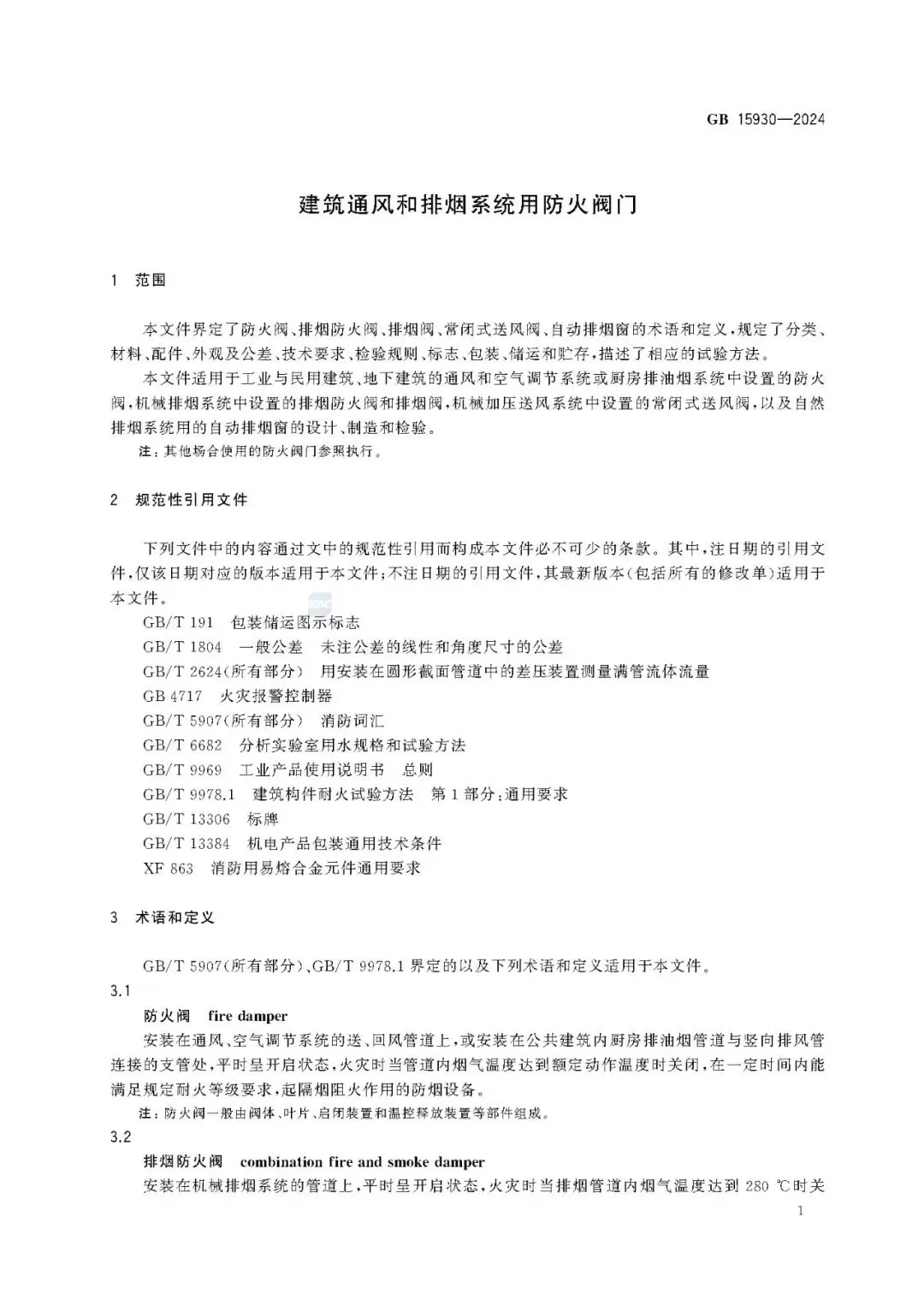 中文标准名称:建筑通风和排烟系统用防火阀门