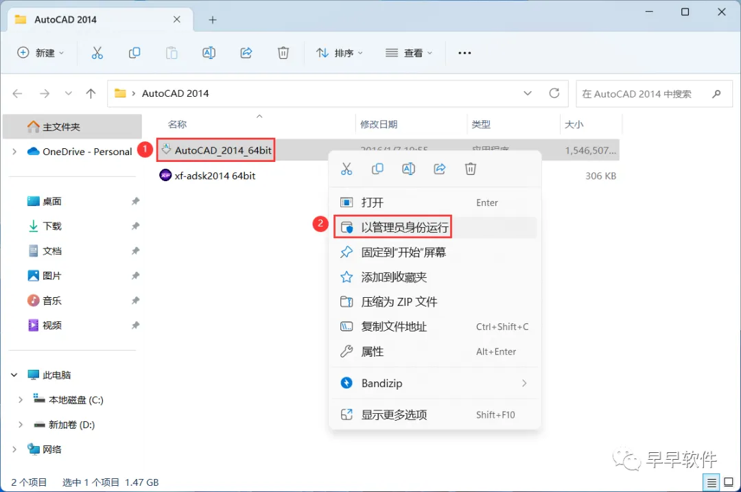20、回到AutoCAD 2014文件夹,找到【xf-adsk2014】程序,右键选择【以管理员身份运行】它