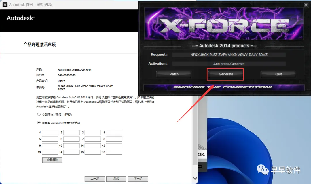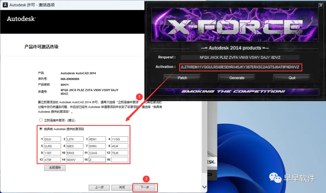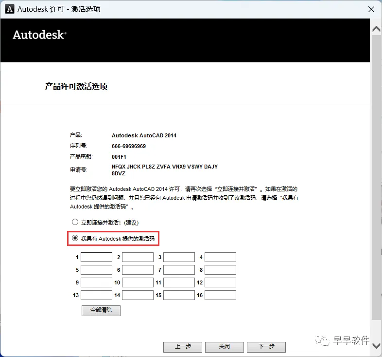 24、将程序的【Activation】填入到软件的【激活码】内,再点击【下一步】