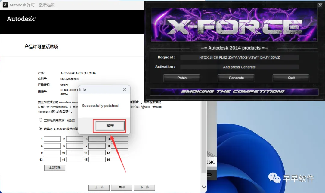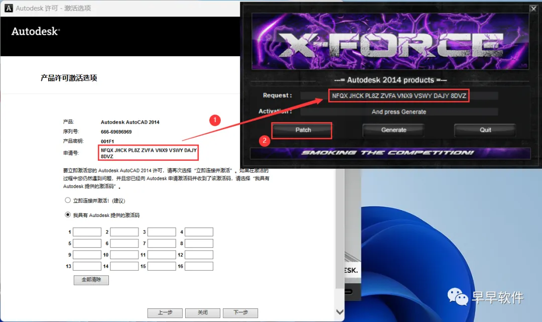 21、打开软件界面,将软件的【申请号】填入到程序的【Requset】内,再点击【Patch】