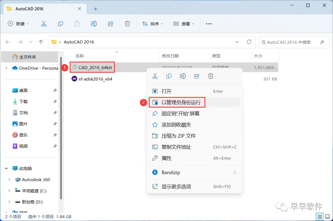 20、回到AutoCAD 2016文件夹,找到【xf-adsk2016】程序,右键选择【以管理员身份运行】它