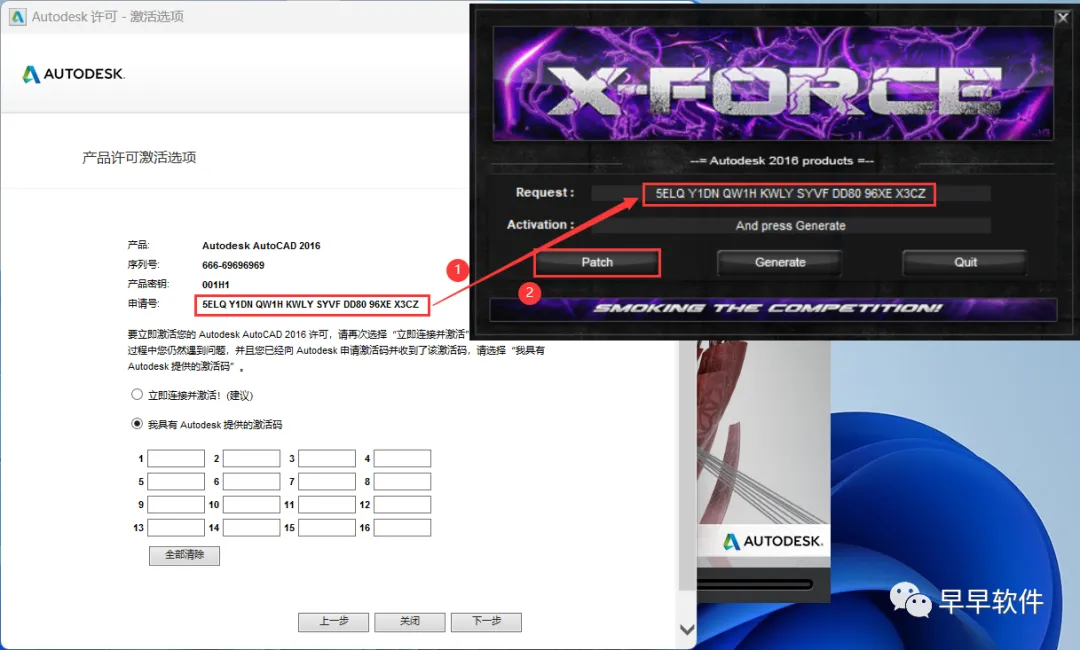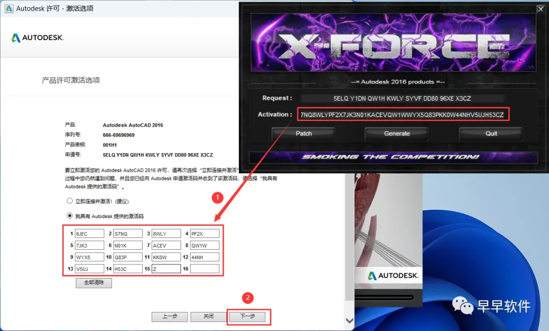 24、将程序的【Activation】填入到软件的【激活码】内,再点击【下一步】