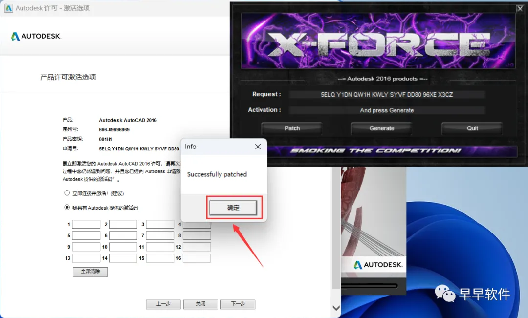 21、打开软件界面,将软件的【申请号】填入到程序的【Requset】内,再点击【Patch】