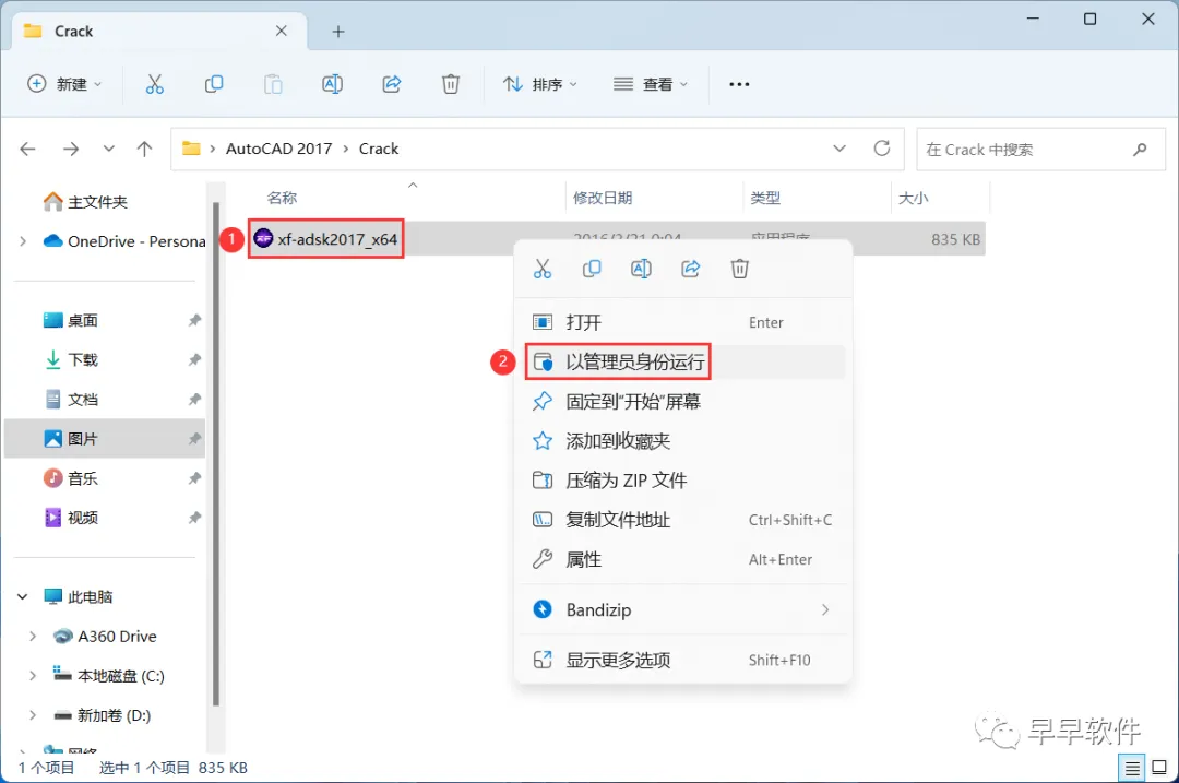 22、回到AutoCAD 2017文件夹,找到【Crack】文件夹,右键【打开】它