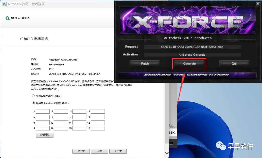 27、将程序的【Activation】填入到软件的【激活码】内,再点击【下一步】