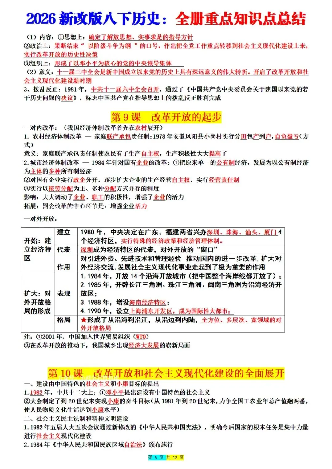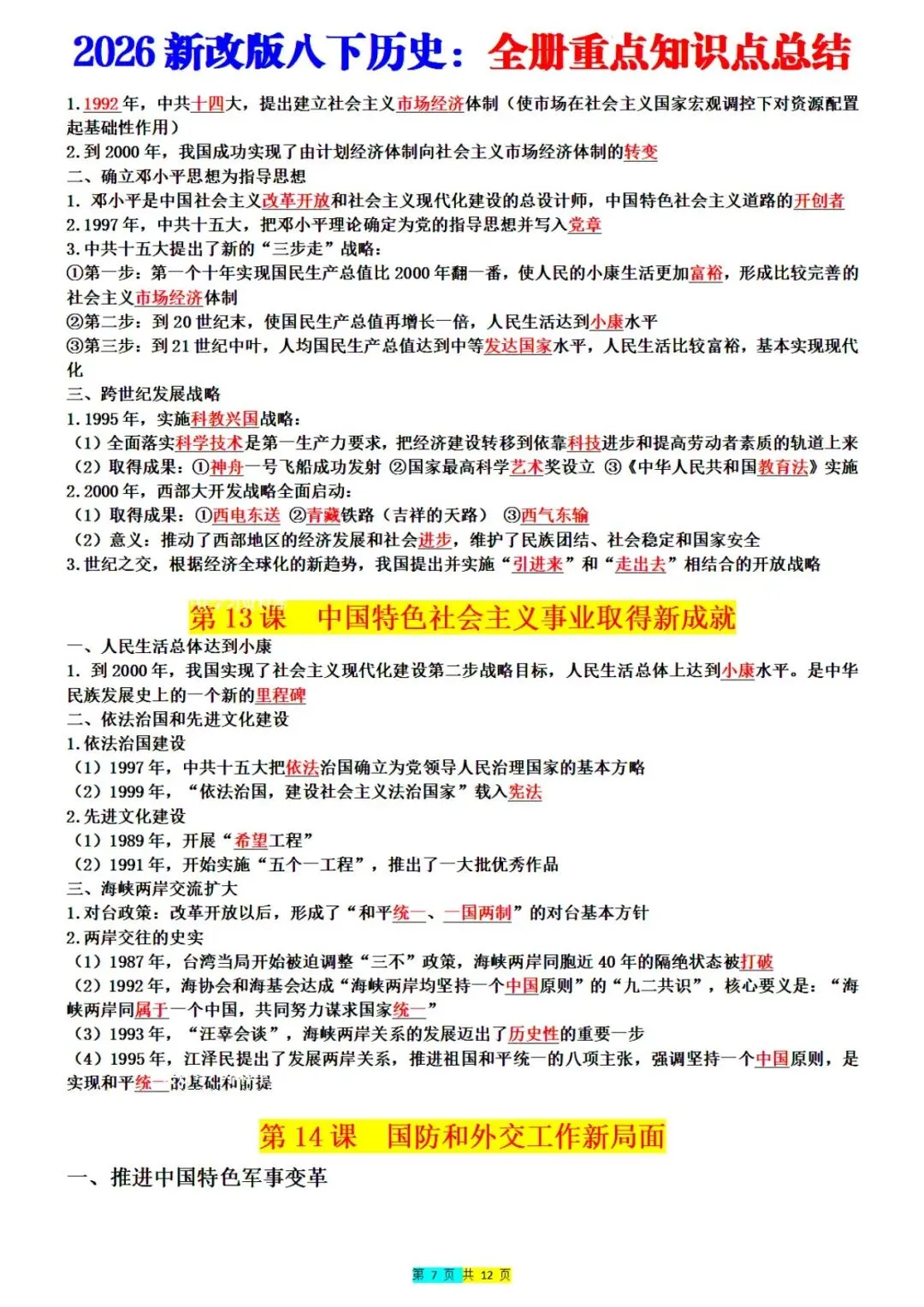 涵盖新中国成立、抗美援朝、土地改革、一五计划、三大改造、改革开放、祖国统一、外交科技等核心考点✨