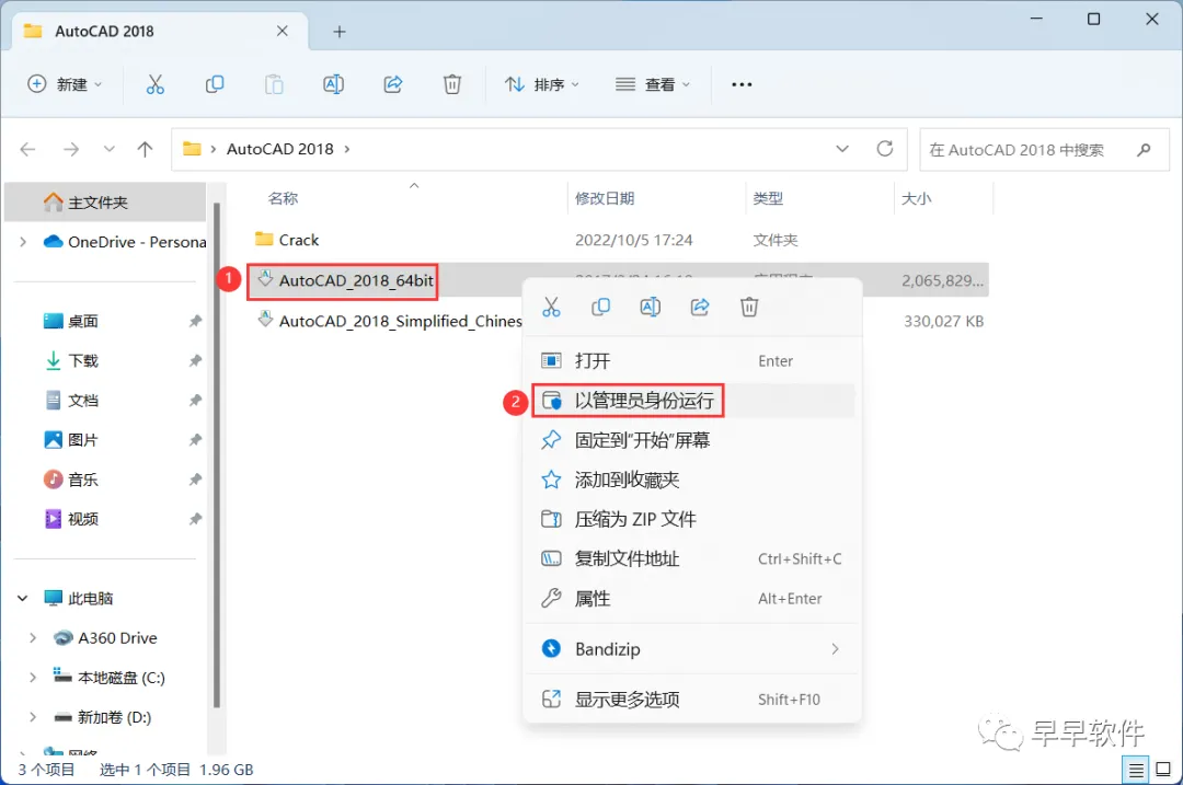 1、下载AutoCAD 2018软件安装包到电脑上,右键选择【解压到AutoCAD 2018\】